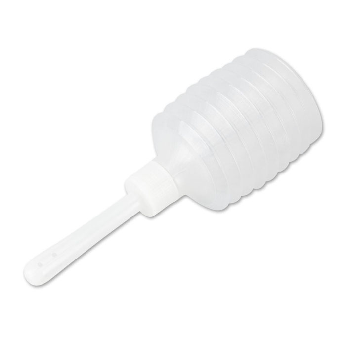 Прозрачный резервуар-гормошкой подойдет для мини-промывания перед анальным контактом или впрыскивания лубриканта в анальное отверстие.Рекомендуется для одноразового использования.