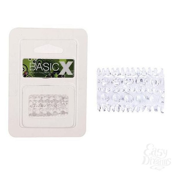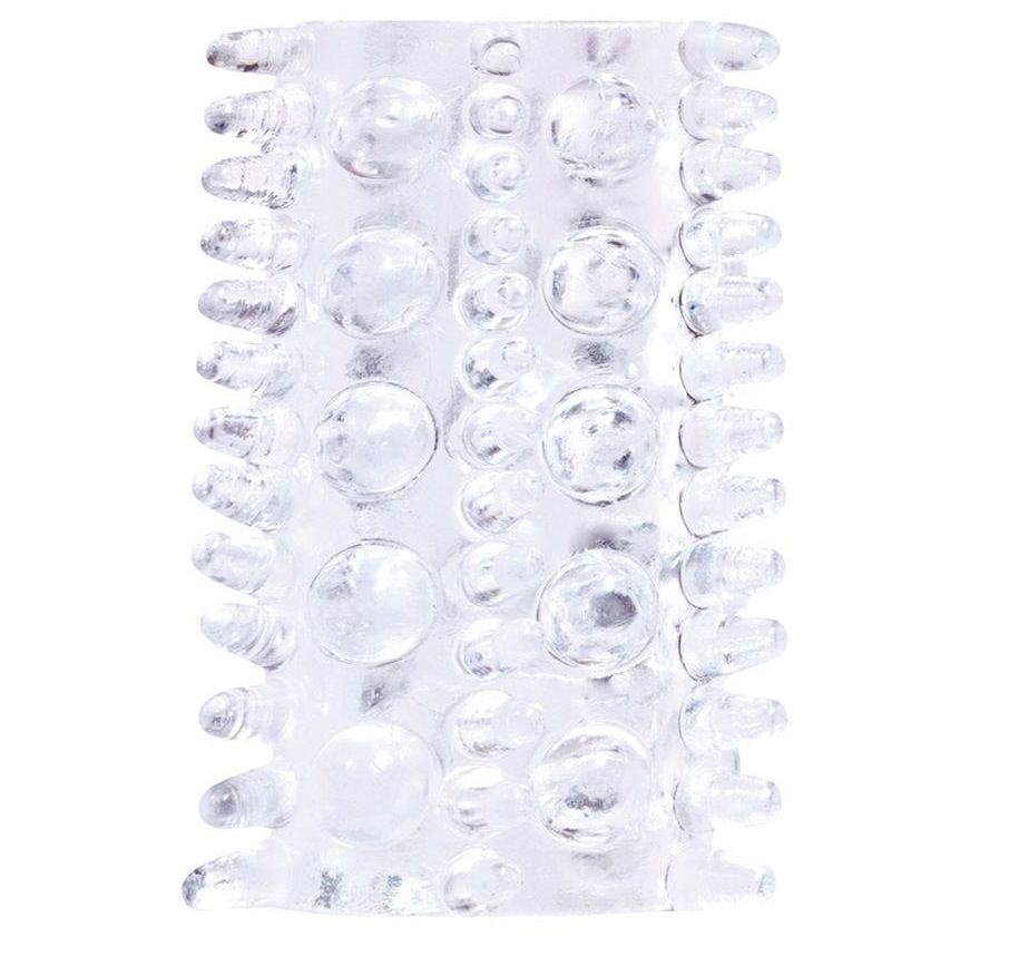 Секс шоп » Насадки / Кольца » Насадки на пенис » Прозрачная насадка на пенис с шипами и шишечками BASICX TPR SLEEVE CLEAR 0.7INCH