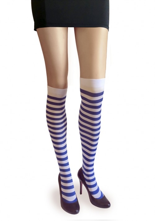 Полосатые чулки в сине-белую полоску, 100% нейлон