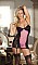 Сорочка с уплотненными чашечками на косточках застегивается сзади на крючки, украшена кружевными вставками. Чашечки на атласной подкладке. В комплекте съемные подвязки и трусики-стринг.