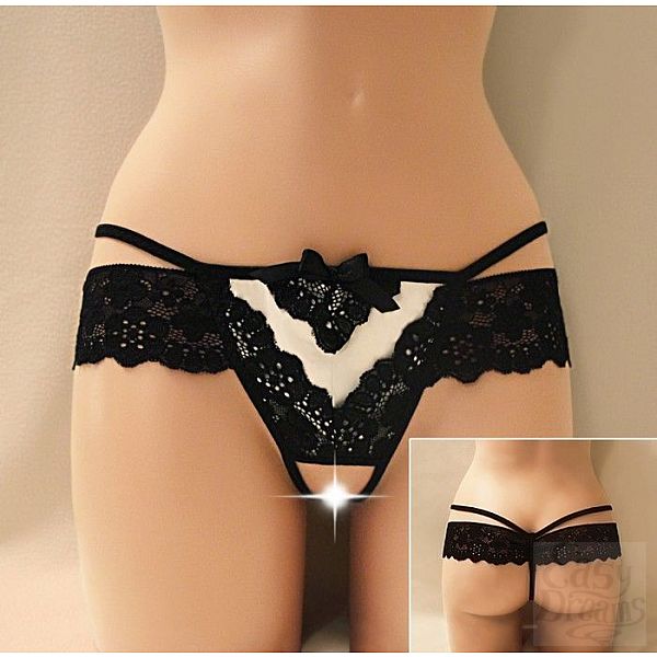 Секс шоп » Эротическое белье » Трусики » Открытые кружевные трусики с V-образной вставкой